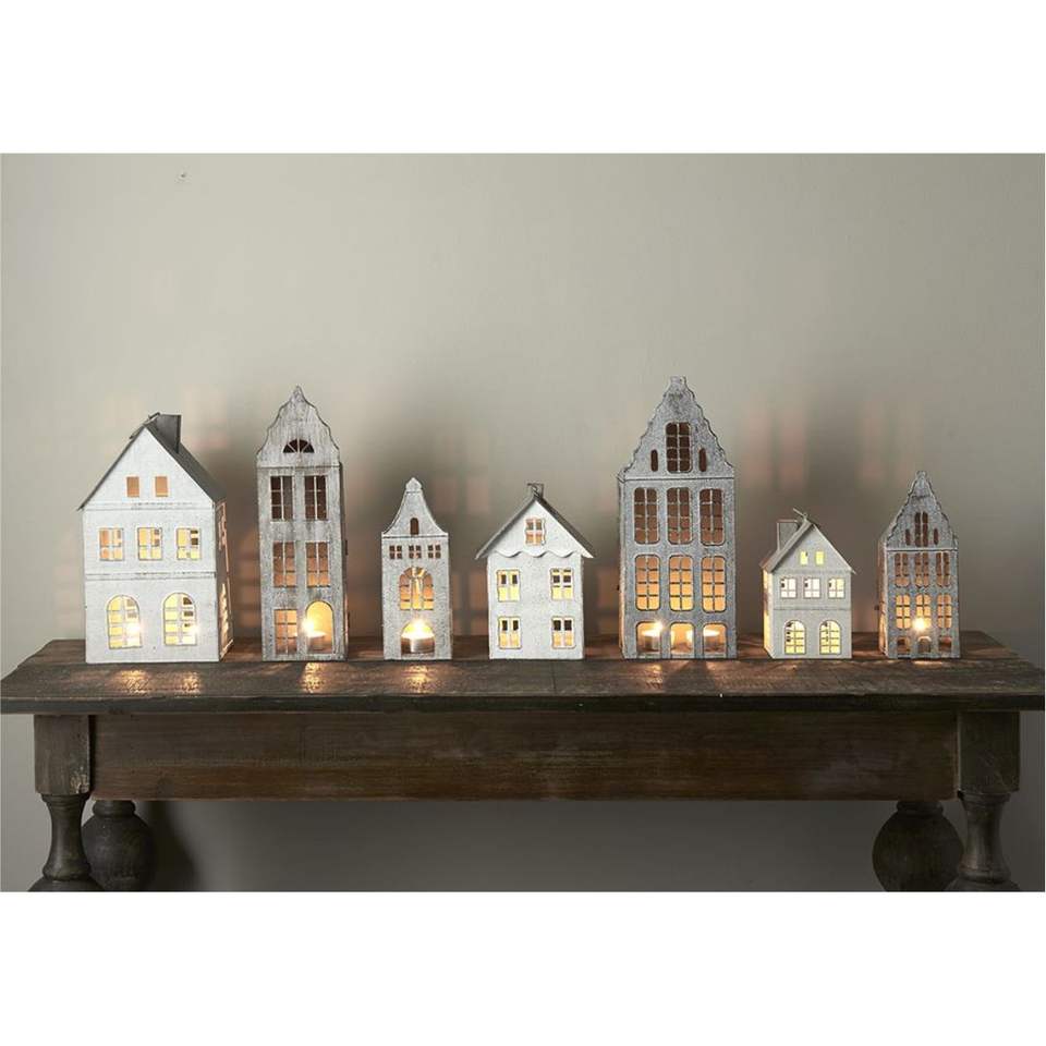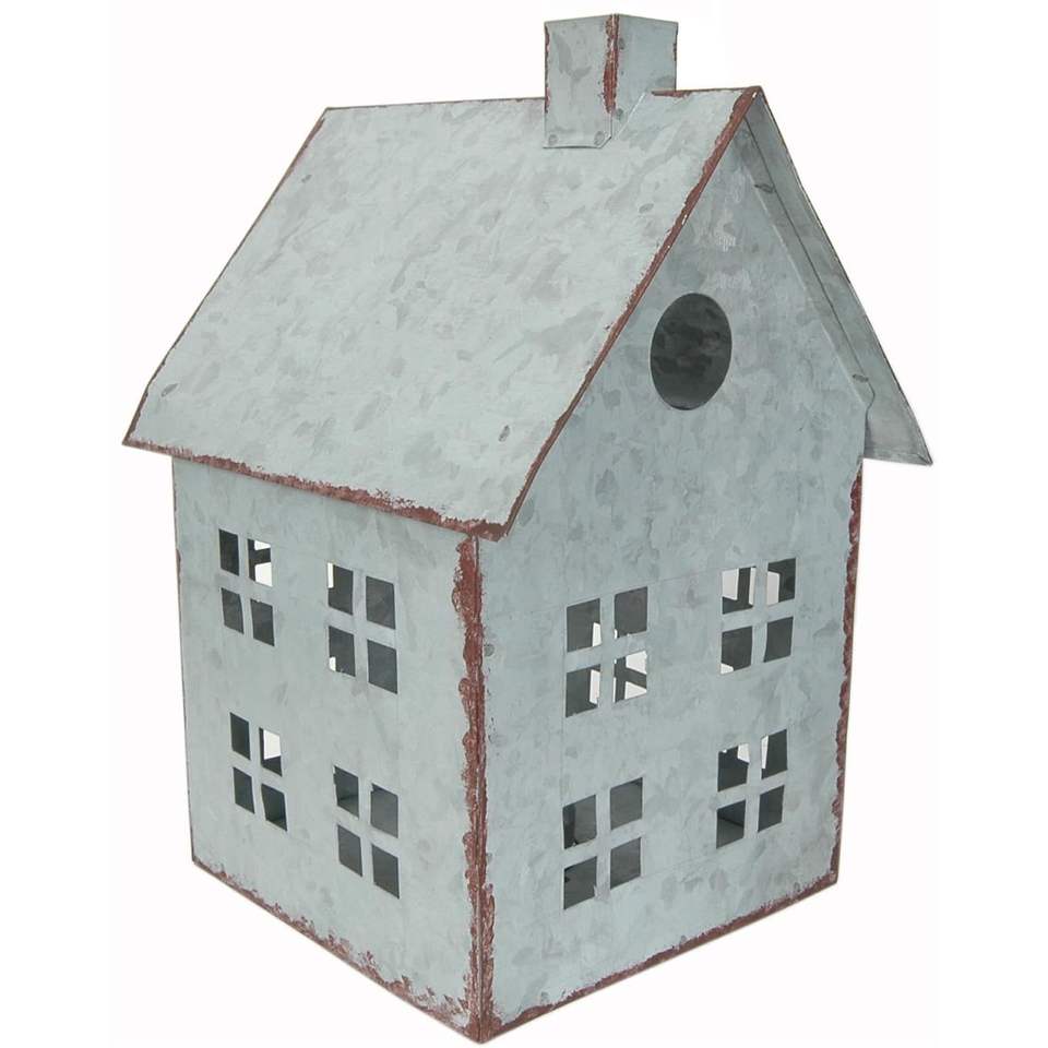 เชิงเทียนโลหะสังกะสีสีเงินแบบโบราณที่ใส่เทียนทีไลท์โคมไฟรูปทรงบ้านของตกแต่งบ้านเชิงเทียนสำหรับตกแต่งในร่มวันหยุด