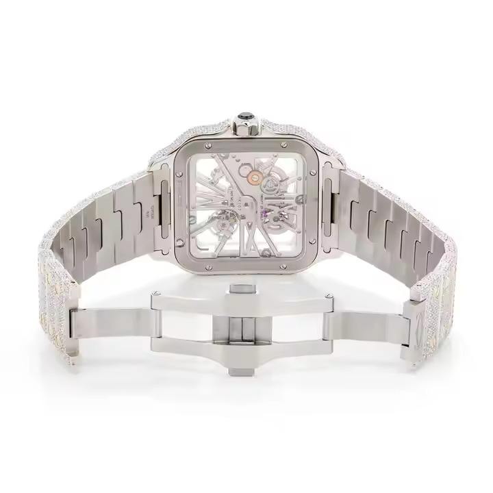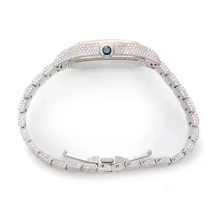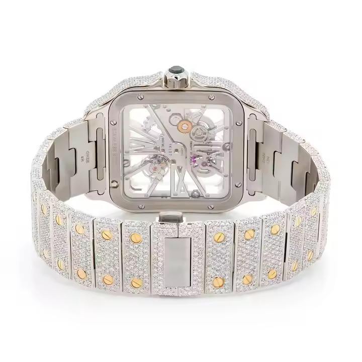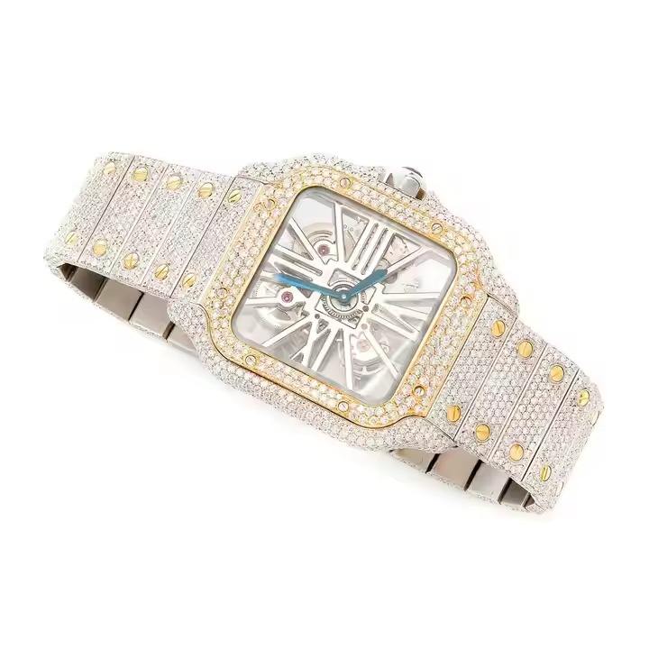 นาฬิกาทรงสี่เหลี่ยมทำจากสเตนเลสสตีลหน้าปัดอะนาล็อกโมอิสโบราณสไตล์ธุรกิจกระจกหน้าต่างฮิปฮอปสุดหรู