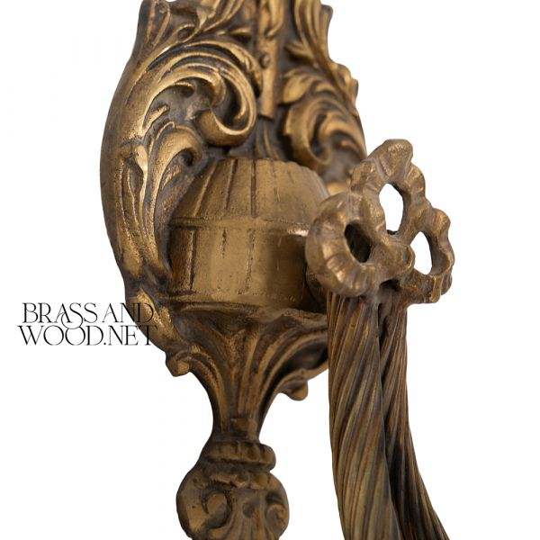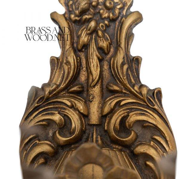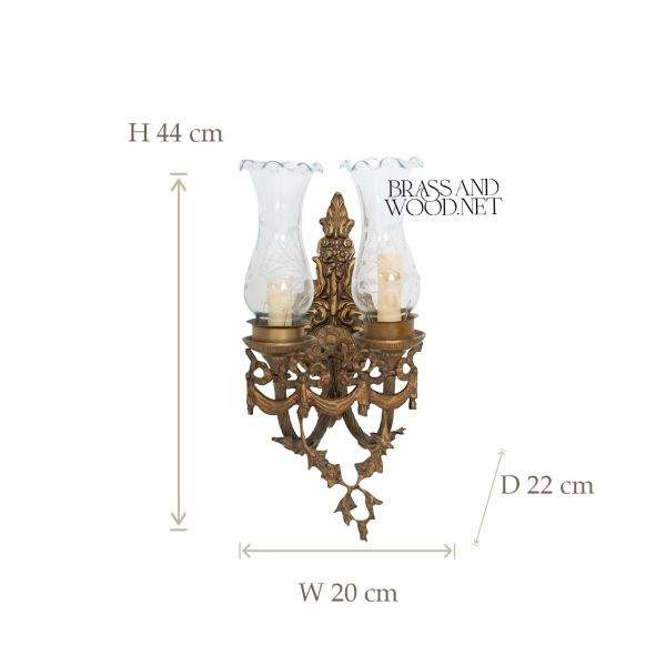 เชิงเทียนผนังทองเหลืองโบราณที่มีดีไซน์แขนคู่เฉดสีแก้วแกะสลักและรายละเอียดหรูหราสำหรับการตกแต่งภายในที่หรูหราแบบคลาสสิก