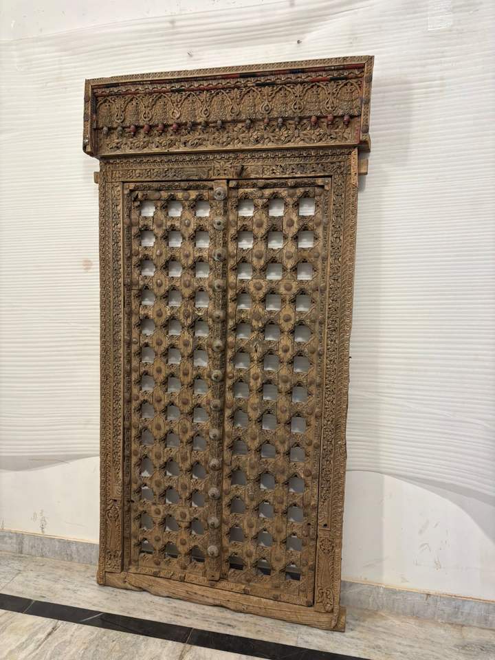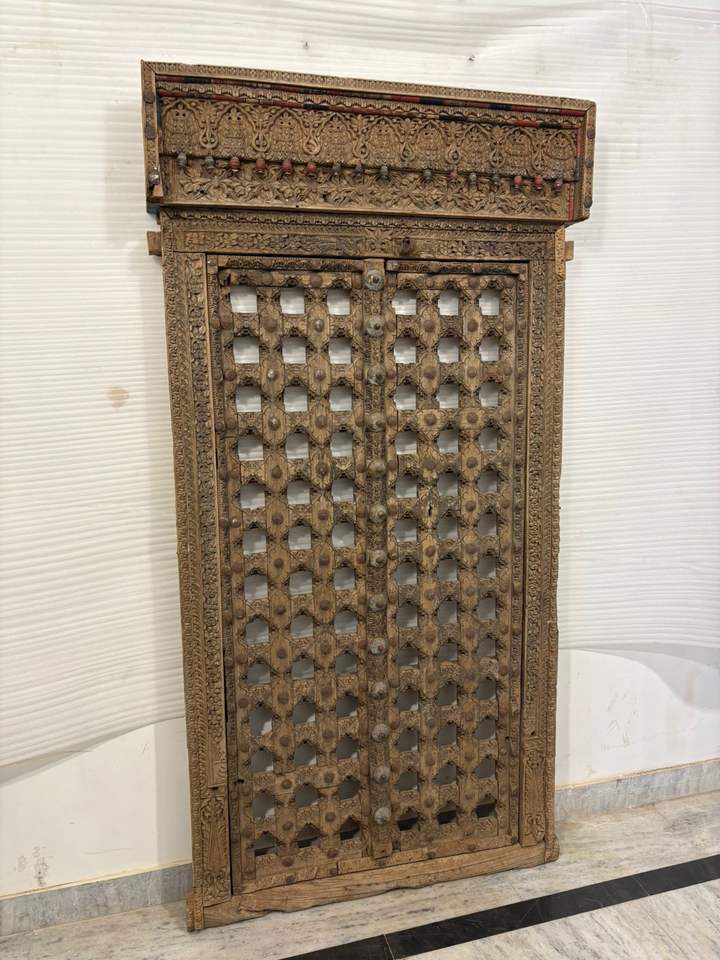 แผงประตูไม้เนื้อแข็งโบราณพร้อมกรอบแกะสลักด้วยมือ ประตูหน้าบ้านหรูหราสำหรับร้านอาหาร โรงแรม เฟอร์นิเจอร์บ้าน
