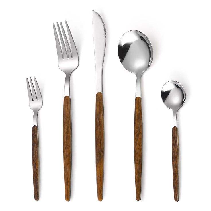 ชุดช้อนส้อมสแตนเลสพร้อมด้ามจับไม้เนื้อแข็งแบบโบราณ ชุดเครื่องครัว 5 ชิ้น ชุดอาหารเย็น