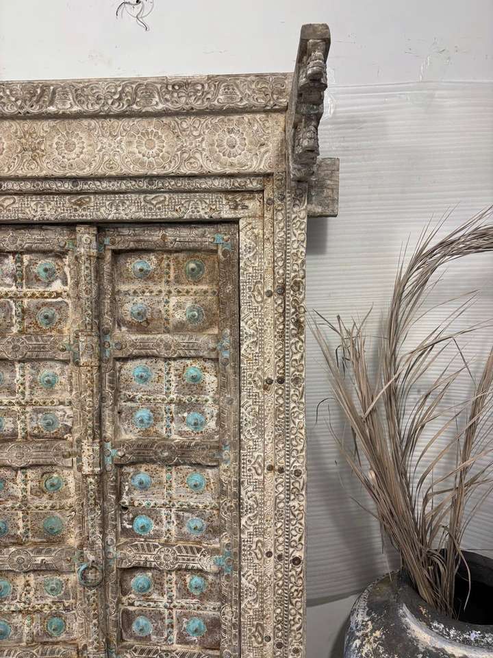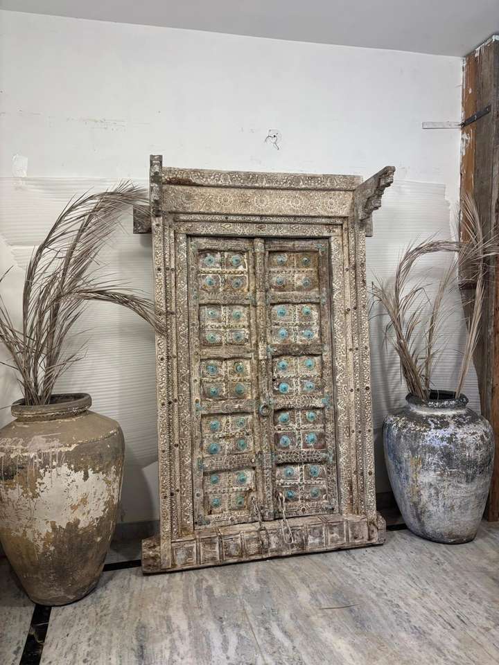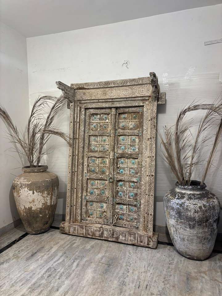 ประตูไม้เนื้อแข็งโบราณพร้อมกรอบแกะสลักด้วยมือ สไตล์โมเดิร์นกลางศตวรรษ เหมาะสำหรับห้องนอน ห้องนั่งเล่น และห้องรับประทานอาหารในวิลล่าหรู