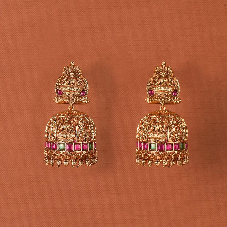 ต่างหูห่วงแฟชั่นอินเดียใต้โบราณชุบทองด้านตรงจากผู้ผลิตและผู้ค้าส่ง