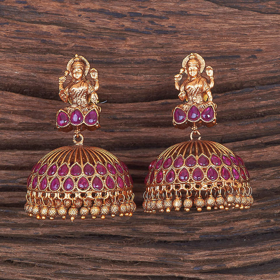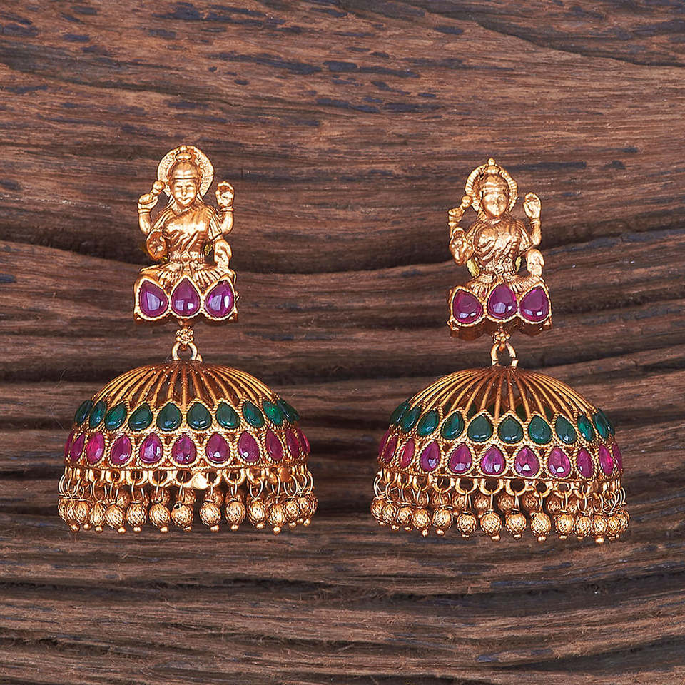 ต่างหูวัดอินเดียใต้โบราณพร้อม670052ชุบทองด้าน