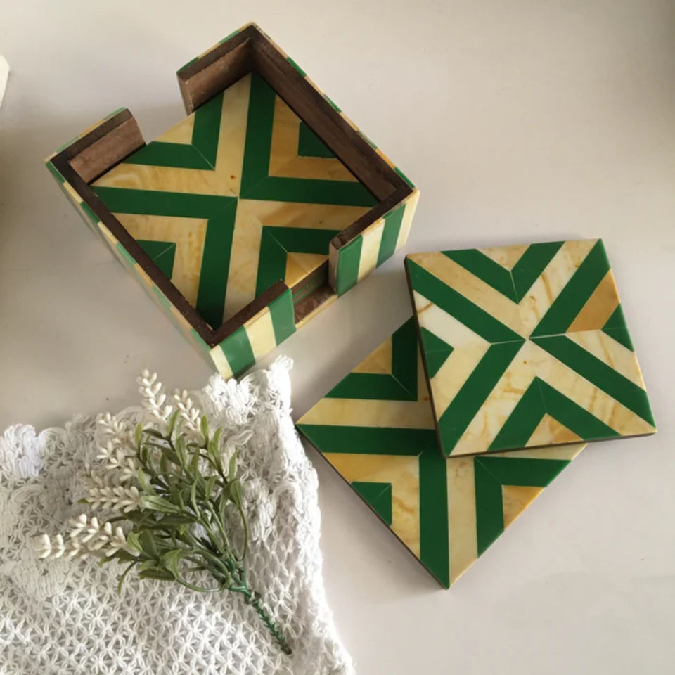 ชุดที่รองแก้วกาแฟทรงสี่เหลี่ยมแบบโบราณพร้อมถาดรองแก้วเคลือบหินอ่อนสีเขียวน้ำทะเลอุปกรณ์เสริมสำหรับโต๊ะทำงาน