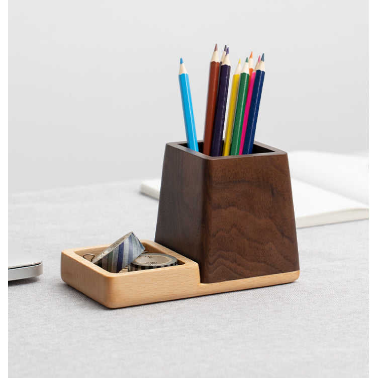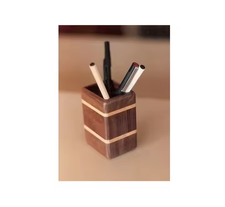 ที่ใส่ปากกาทำจากไม้ทรงสี่เหลี่ยมโบราณสำหรับจัดของบนโต๊ะทำงานที่โรงเรียนบ้านโดยงานฝีมือรูปพระจันทร์เสี้ยว
