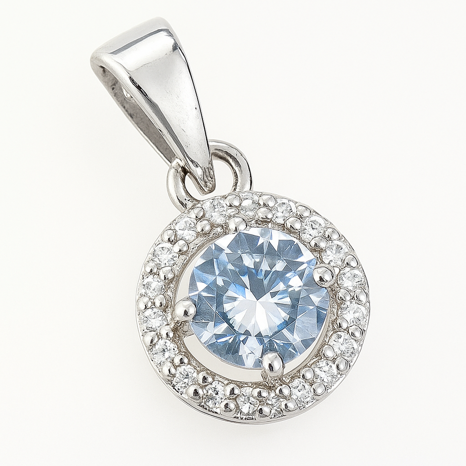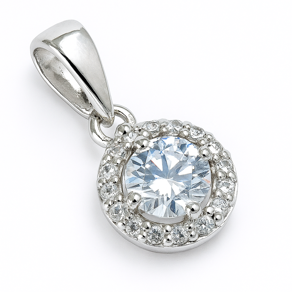 จี้เพชรรูปรัศมีสีเงินสเตอร์ลิงโบราณ-เครื่องประดับแฟชั่นคิวบิกเซอร์โคเนีย