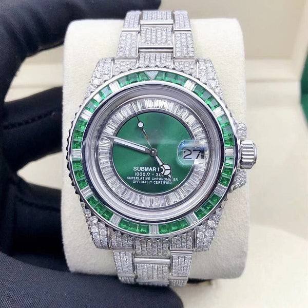 Baguette VVS Moissanite นาฬิกาข้อมือออโตเมติกประดับเพชรแบบอัตโนมัติแนวฮิปฮอปแฟชั่นกลไกแบบญี่ปุ่นสำหรับผู้ชาย