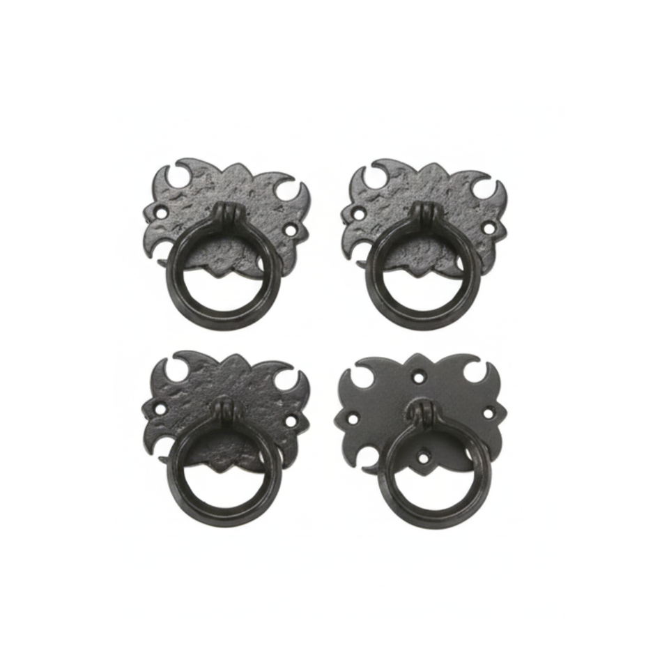 มือจับวงแหวนเหล็กเคลือบสีดำสไตล์โบราณสำหรับตู้ครัว ตู้ห้องนอน ตู้เสื้อผ้า เฟอร์นิเจอร์ - ฮาร์ดแวร์วินเทจที่ทนทาน