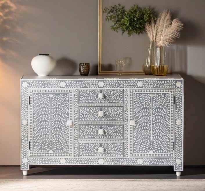 ตู้ฝังกระดูกสไตล์โบราณที่มีดีไซน์ซับซ้อนตู้เก็บไม้ทำด้วยมือสำหรับห้องนั่งเล่นและเฟอร์นิเจอร์ห้องโถง