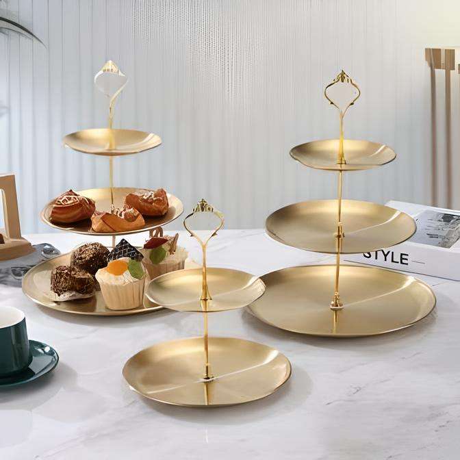 ชั้นวางของว่าง 3 ชั้น ทำจากทองเหลืองสไตล์โบราณ สำหรับขนมอบ ของว่าง และตกแต่งโต๊ะอาหาร เหมาะสำหรับบ้าน โรงแรม ร้านอาหาร
