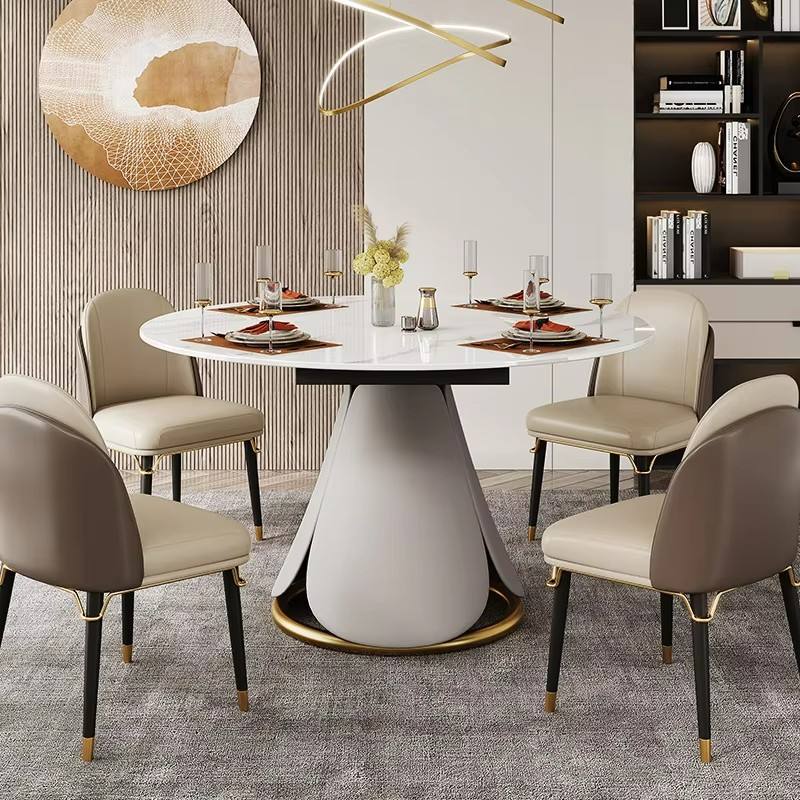 โต๊ะอาหารทรงกลมไม้แกะสลักสไตล์โบราณ