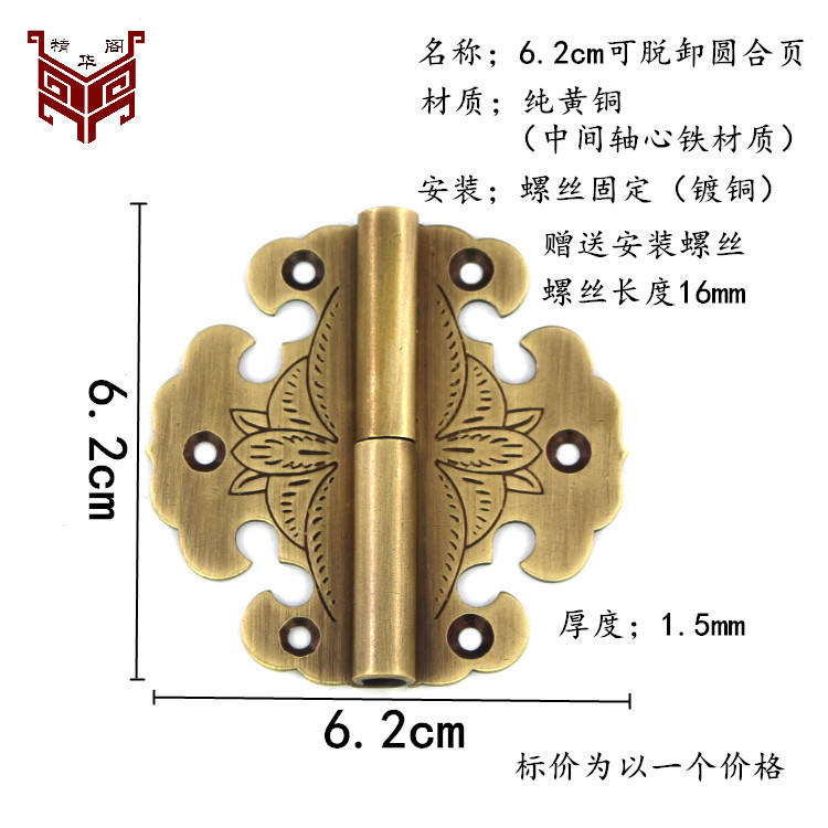 บานพับทองแดงแท้สไตล์จีนโบราณ สำหรับตู้ กล่องเครื่องประดับ ตู้ไม้กฤษณา บานพับหน้าต่างแบบโบราณ