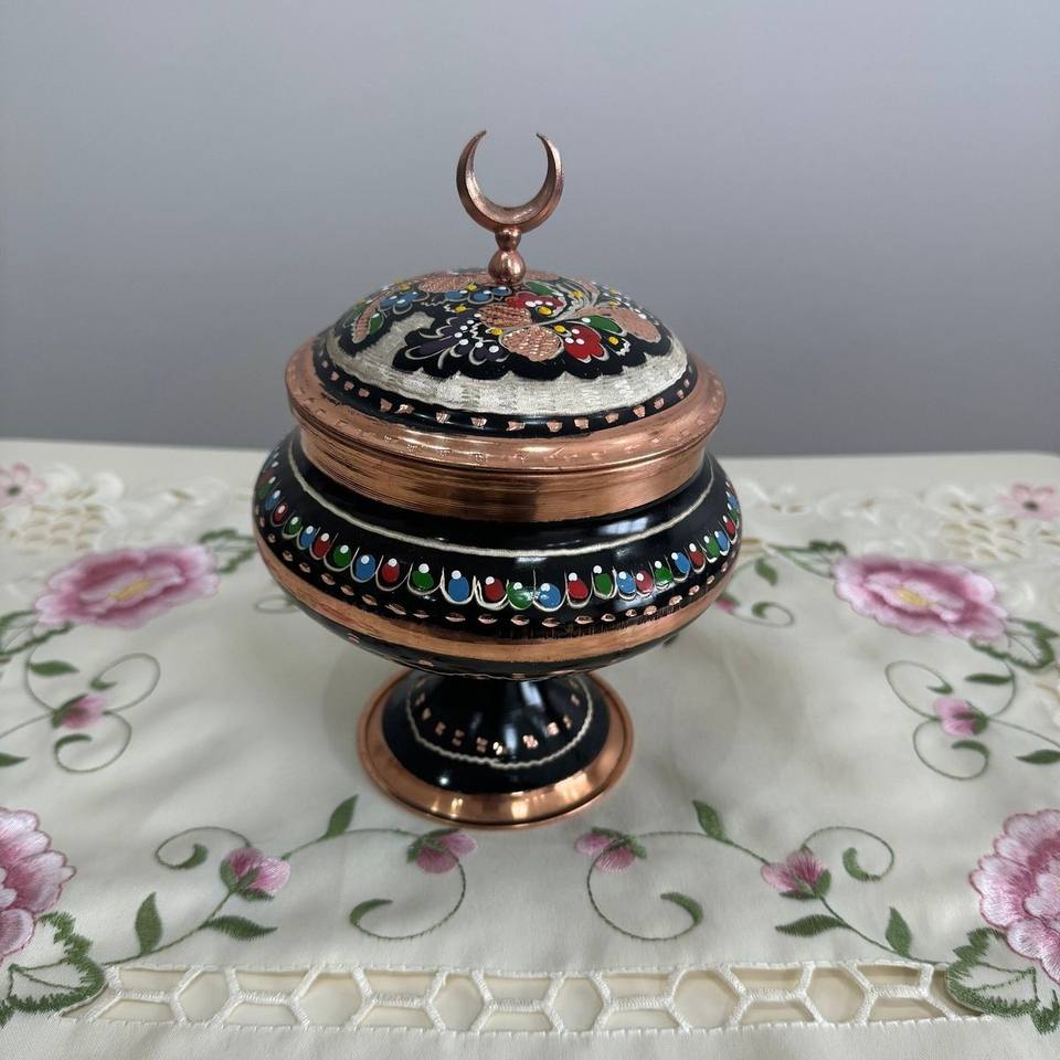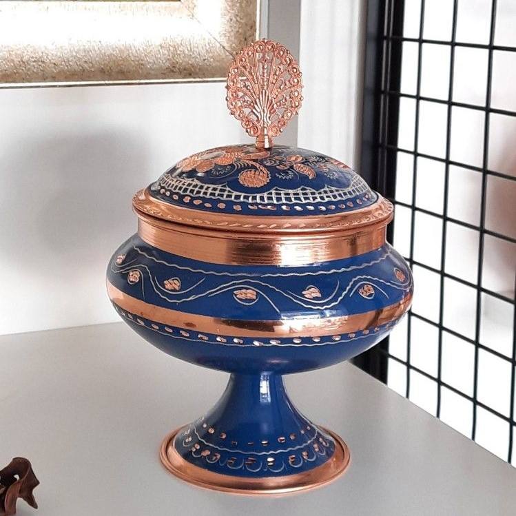 โถใส่น้ำตาลทองแดงสไตล์โบราณ ฝาปิดลายดอกไม้ งานแฮนด์เมด พร้อมฐานวาง โถใส่ขนมสุดหรู สำหรับจัดเก็บในครัว ตกแต่งโต๊ะอาหาร