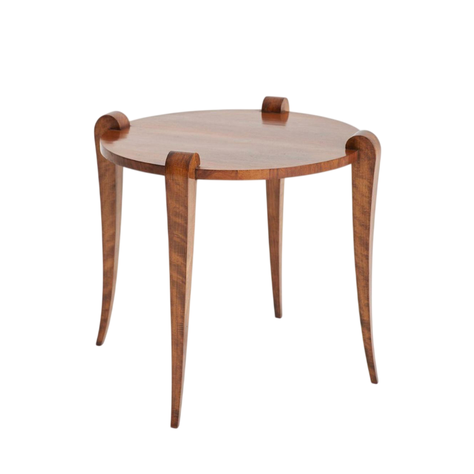 โต๊ะข้างไม้สไตล์โบราณ ขอบโค้งมน ขาตั้งทรงสามขา โต๊ะตกแต่งสไตล์คลาสสิกสำหรับห้องนั่งเล่น