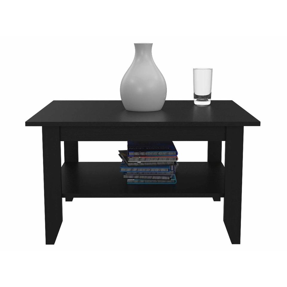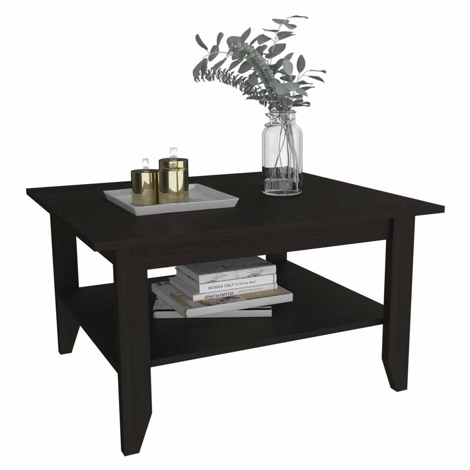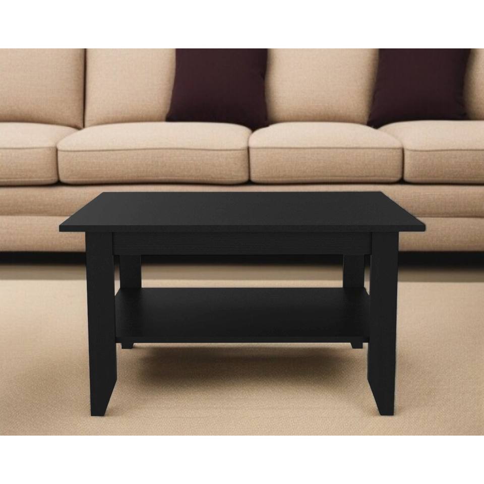Antique-Style HMS 32\" Black Coffee Table with Shelf Wood and Metal Construction for Living Room Dining or Home Furniture Use