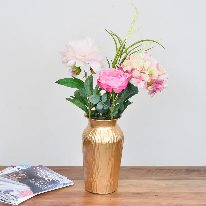 แจกันดอกไม้ทองเหลืองทุบสไตล์โบราณสำหรับผู้ที่ชื่นชอบการตกแต่งวินเทจตกแต่งกลางสำหรับโรงแรมและวิลล่าแจกันดอกไม้