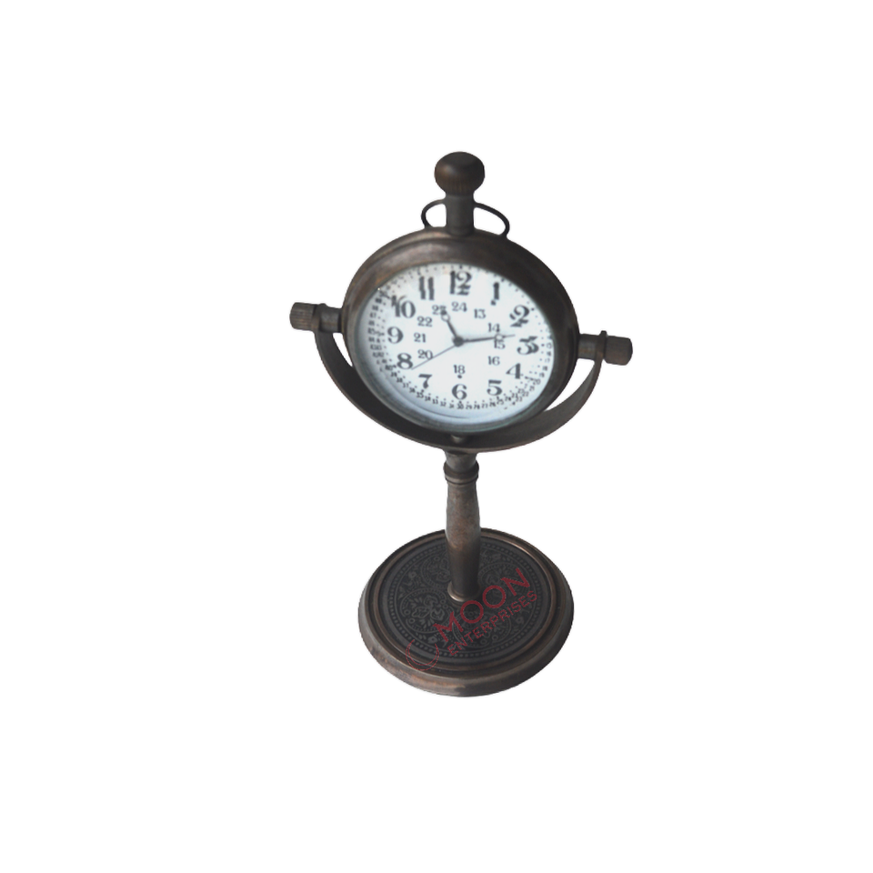 นาฬิกาตั้งโต๊ะโลหะสไตล์โบราณพร้อมขาตั้งทำด้วยมือโดยผู้ส่งออกอินเดียเทคนิคขัดเงา