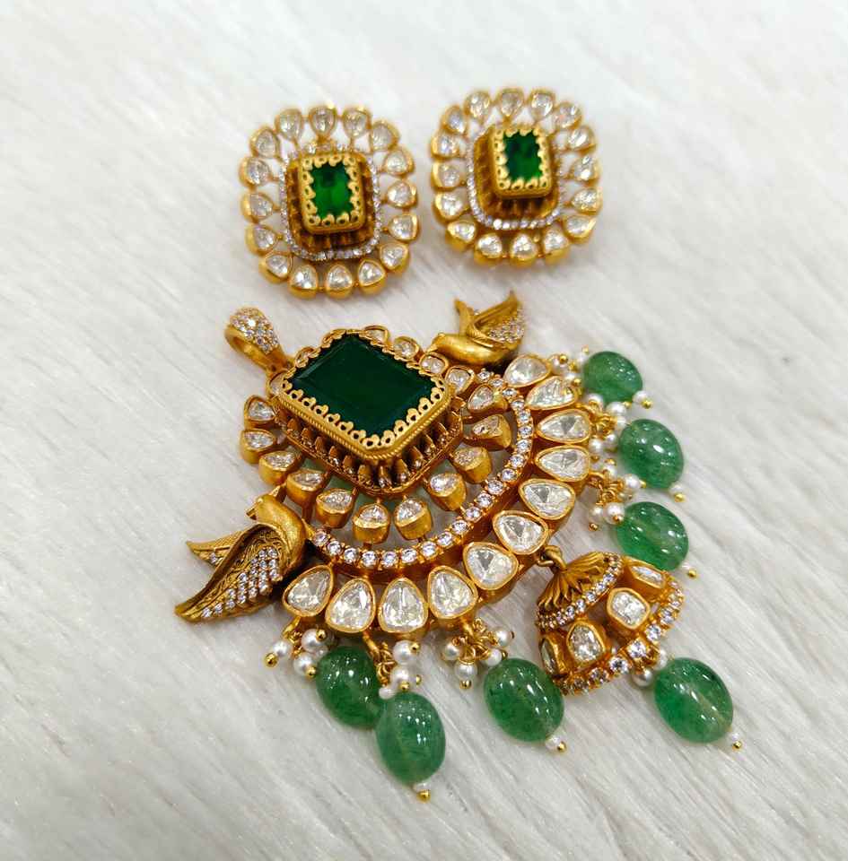 ชุดสร้อยคอและต่างหูสไตล์โบราณประดับหินและไข่มุกสีทองสวยงามสำหรับงานแต่งงานและโอกาสต่างๆ