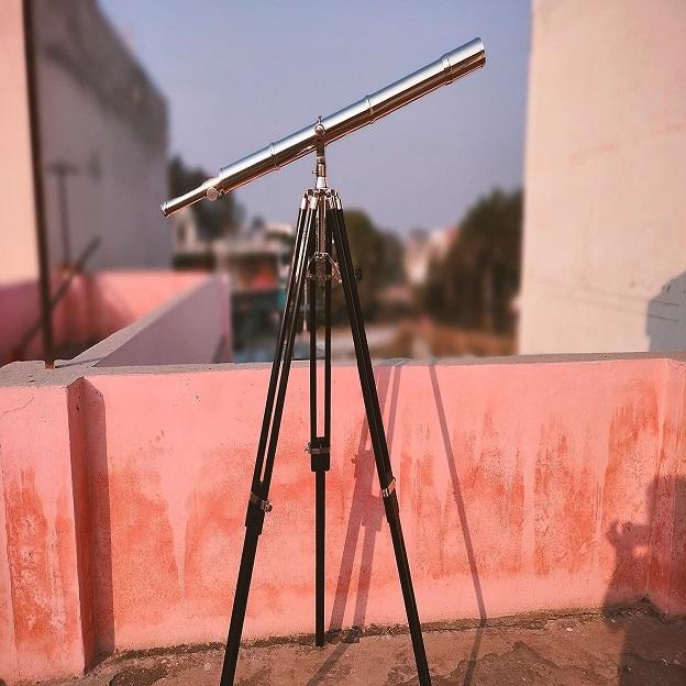สไตล์โบราณกล้องโทรทรรศน์ทองเหลืองทางทะเล65นิ้วขาตั้งสามขาชุบโครเมี่ยมปรับได้และขาตั้งไม้สำหรับให้เป็นของขวัญ