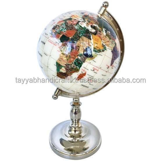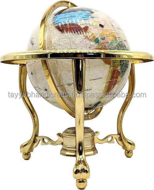 ลูกโลกโลหะตกแต่งสไตล์โมเดิร์น พร้อมฐานไม้เคลือบผิวแบบโบราณ เชือก 2 เส้น งานฝีมือศิลปะงานแต่งงาน Tayyab Handicraft