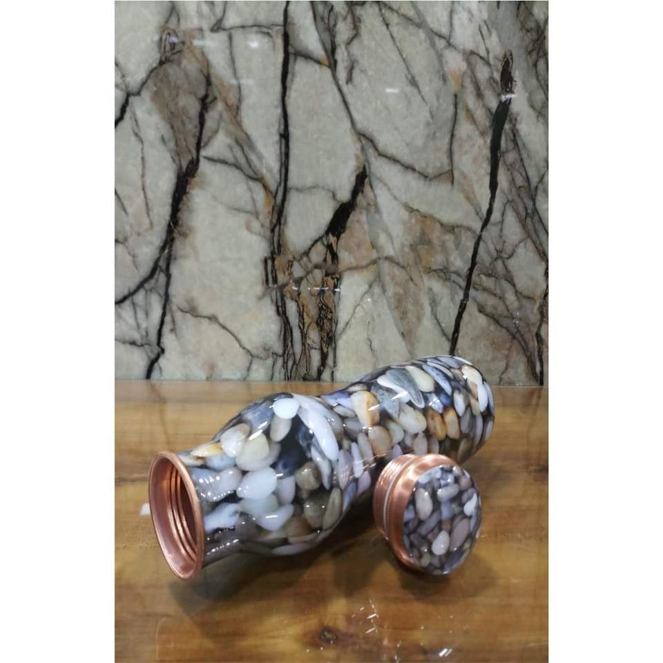 ขวดทองแดงลายก้อนกรวดสไตล์โบราณ ขวดทองแดงแท้ 100% ปราศจากสาร BPA ขวดน้ำเพื่อสุขภาพ ขวดสำหรับออกกำลังกาย สำนักงาน และกิจกรรมกลางแจ้ง