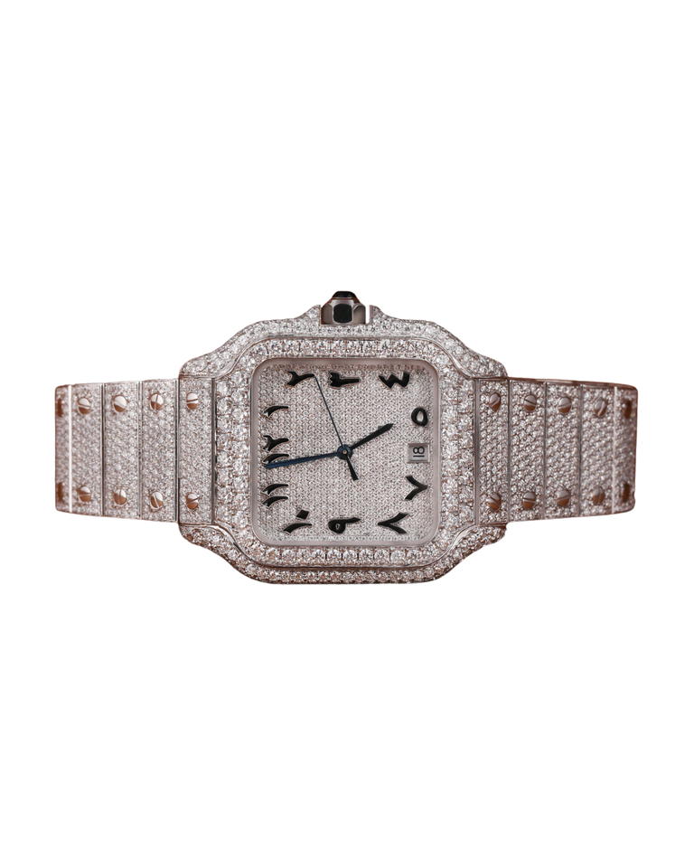 นาฬิกาควอตซ์ผู้ชายสไตล์โบราณสุดหรู คุณภาพระดับ VVS ประดับเพชรโมอิสซาไนต์ ตัวเลขทองคำขาวหน้าปัดขาว ดีไซน์ล่าสุด
