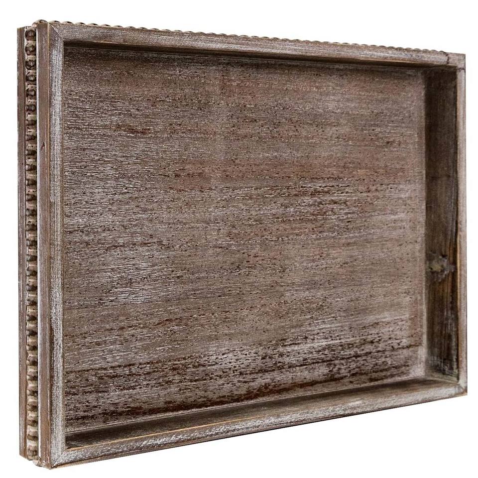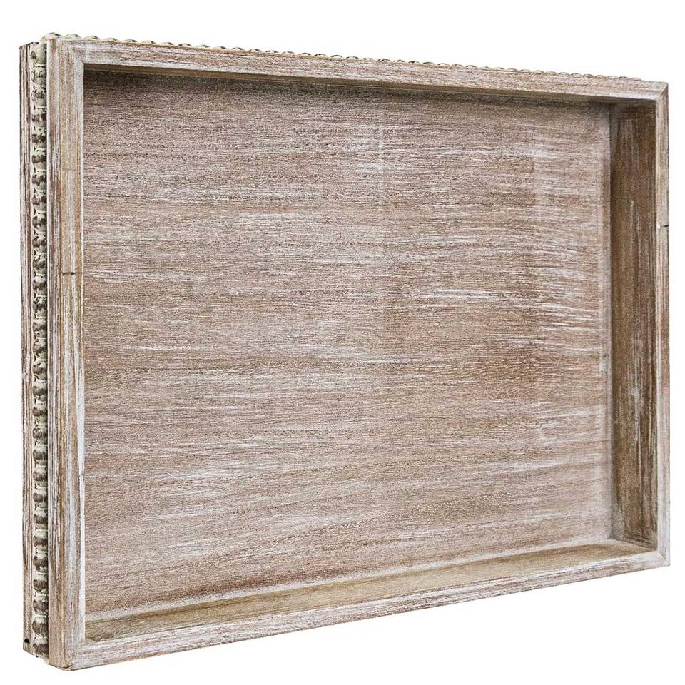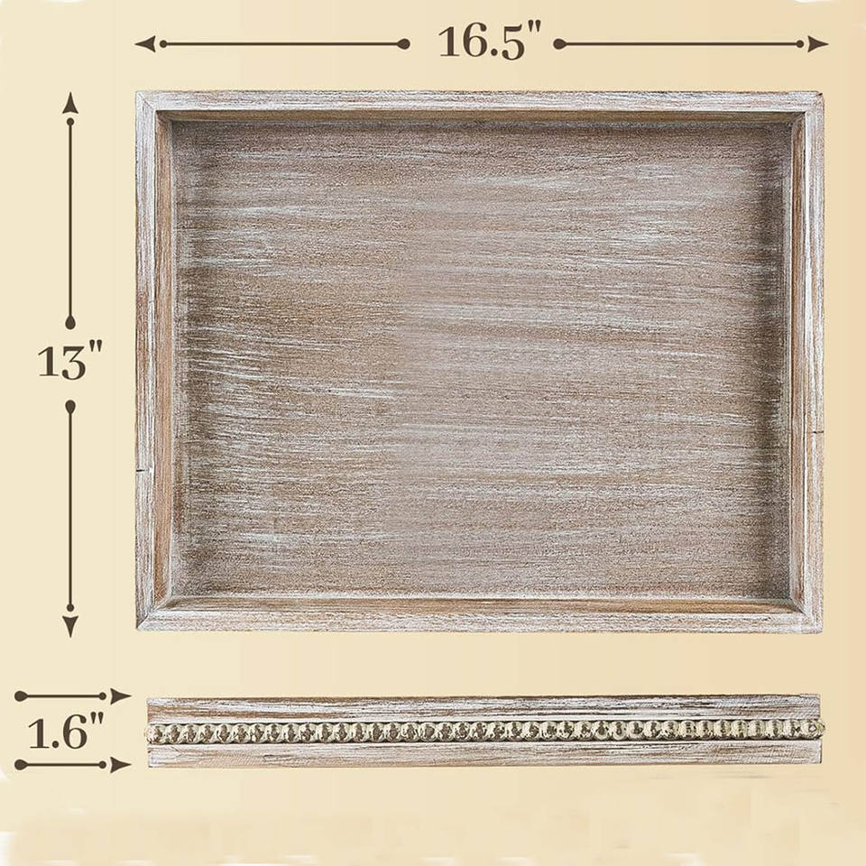 ถาดไม้ทรงสี่เหลี่ยมผืนผ้าพร้อมขอบลูกปัดถาดไม้สไตล์โบราณสำหรับเสิร์ฟกาแฟของว่างหรือรับประทานอาหารบนโต๊ะอาหารหรือโต๊ะกลาง