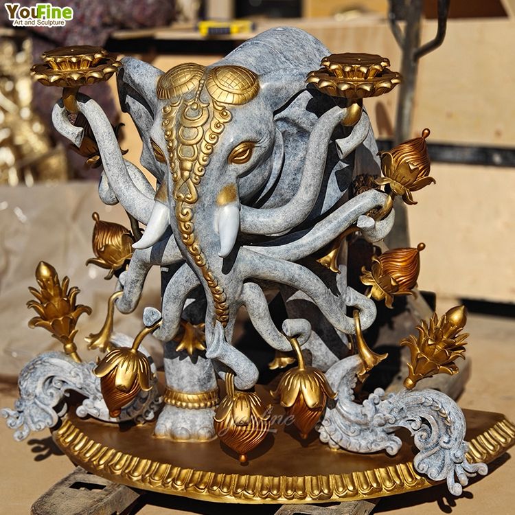 รูปปั้นพระพิฆเนศขนาดใหญ่ ทำจากทองเหลือง บรอนซ์ หรือทองแดงหล่อแบบโบราณ สำหรับตกแต่งตามหลักศาสนาฮินดู หรือใช้เป็นของตกแต่งทางจิตวิญญาณ