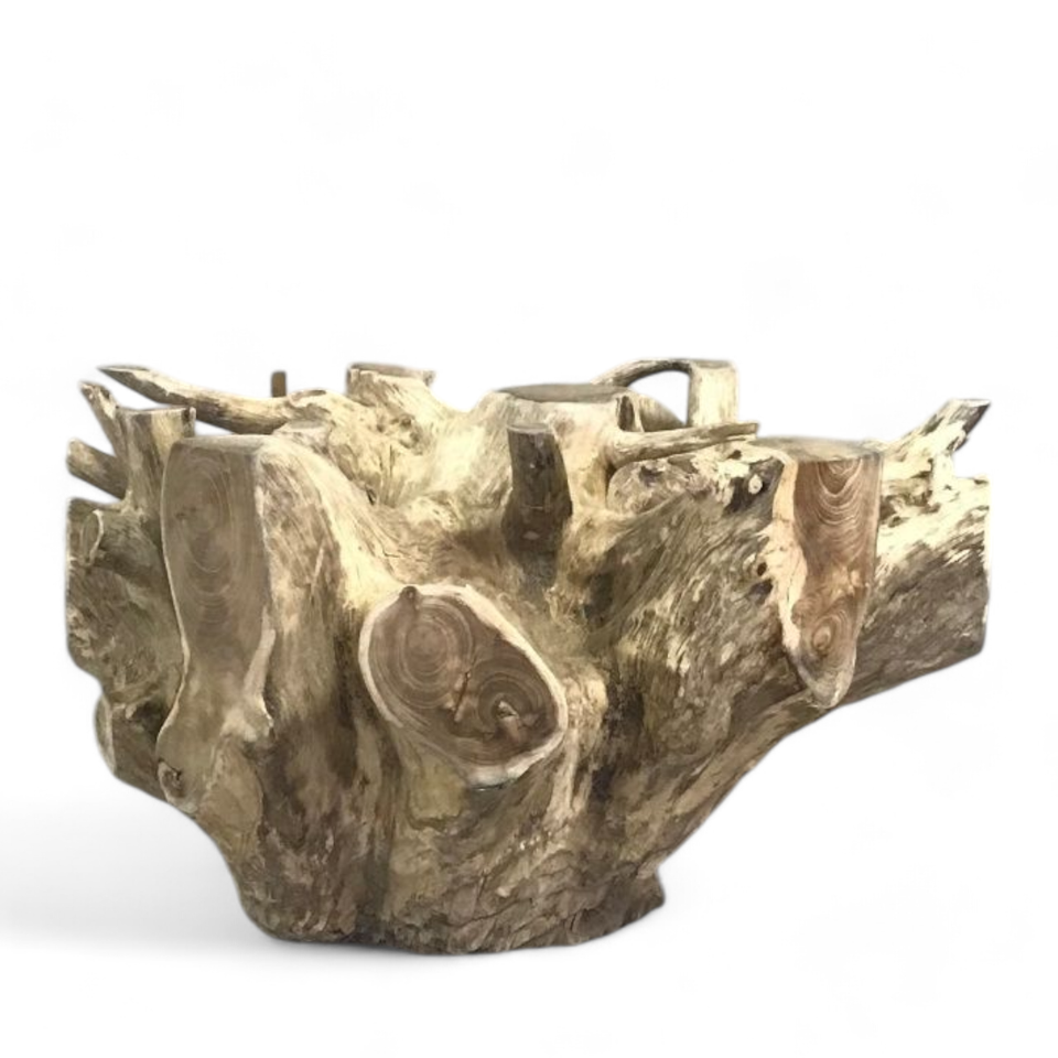 โต๊ะกาแฟไม้สักแท้สไตล์โบราณลายเขตร้อนจากอินโดนีเซีย งานไม้รากไม้ รักษ์โลก สำหรับห้องนั่งเล่น บ้านพักตากอากาศ