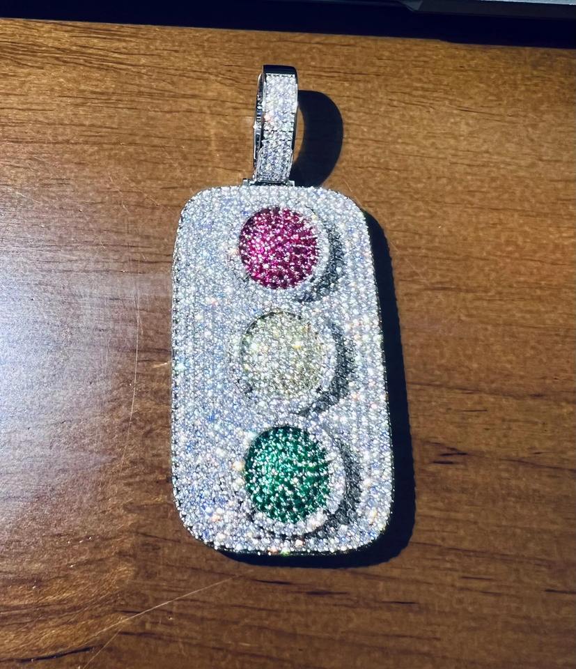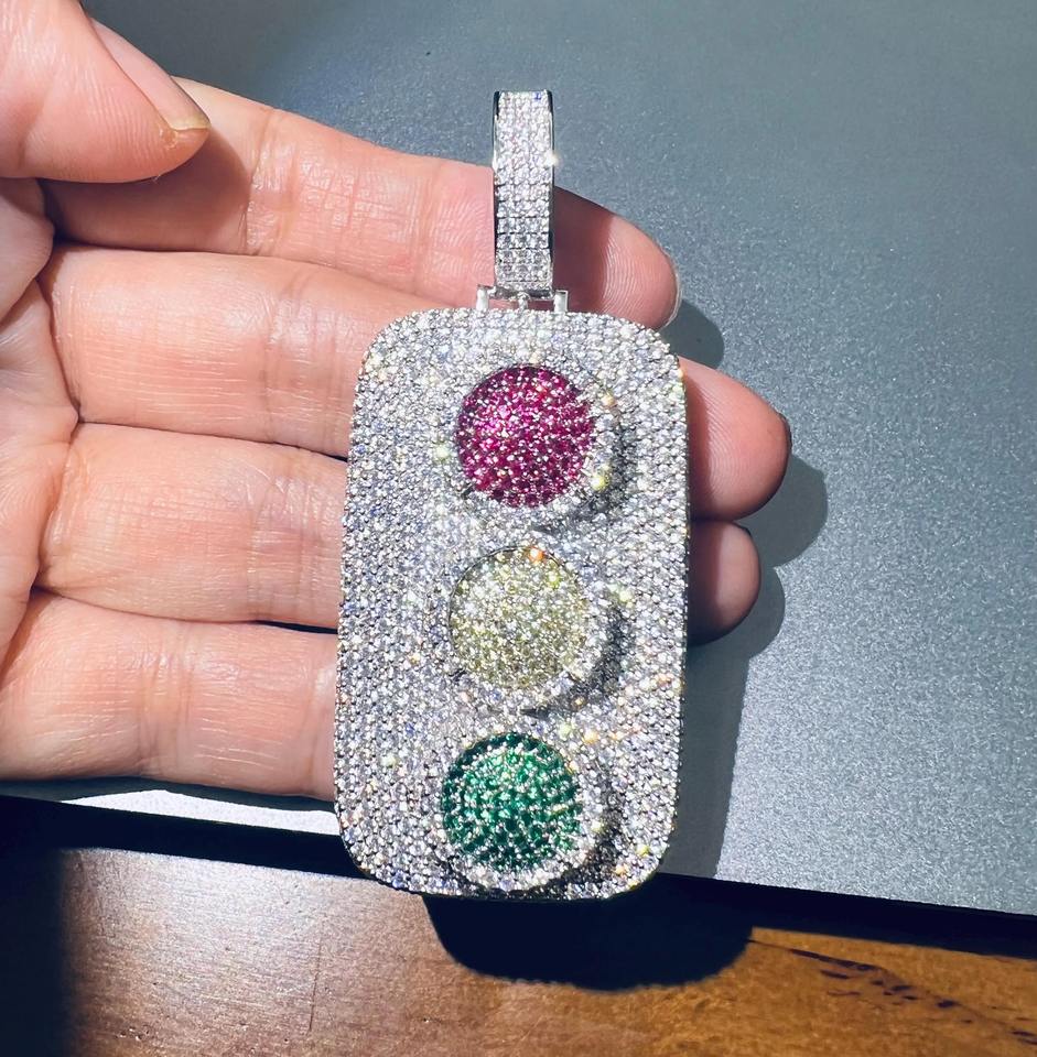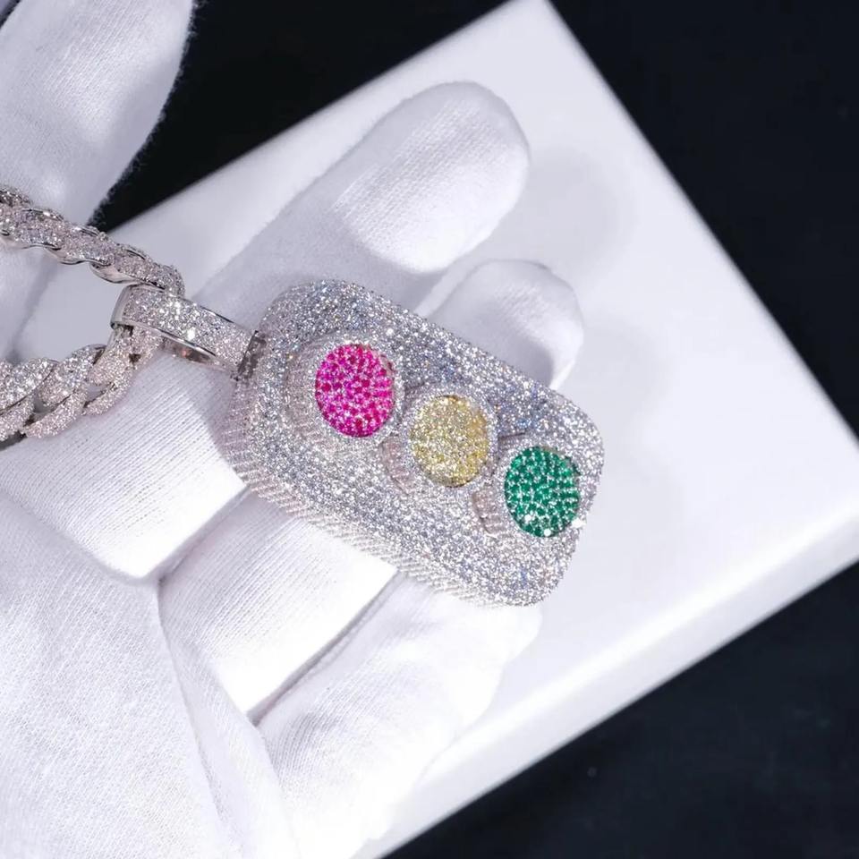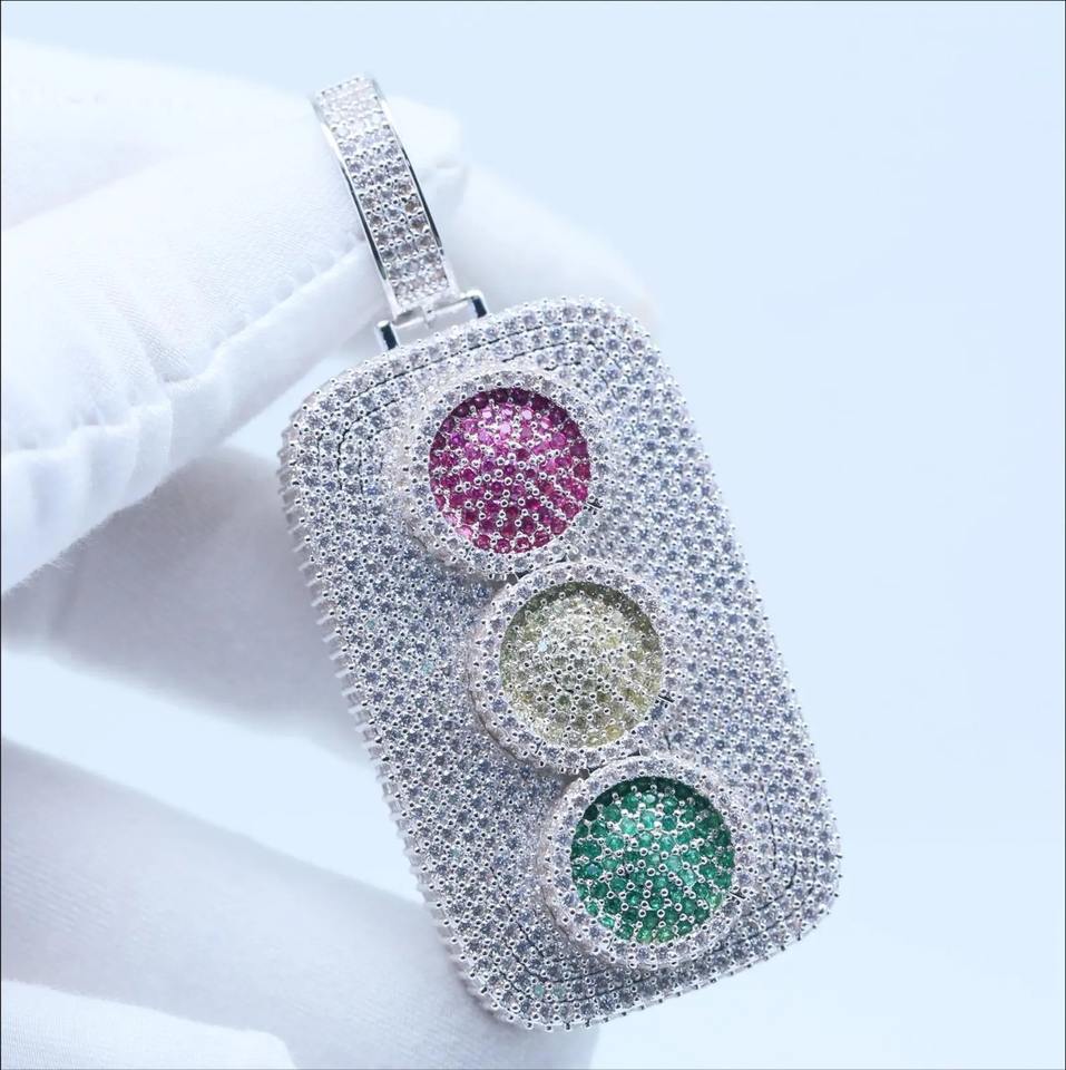 จี้สร้อยคอแบบฮิปฮอปสไตล์โบราณ ประดับเพชรโมอิสซาไนต์ VVS ชุบทองคำขาว 925 ดีไซน์ไฟจราจร ราคาประหยัด