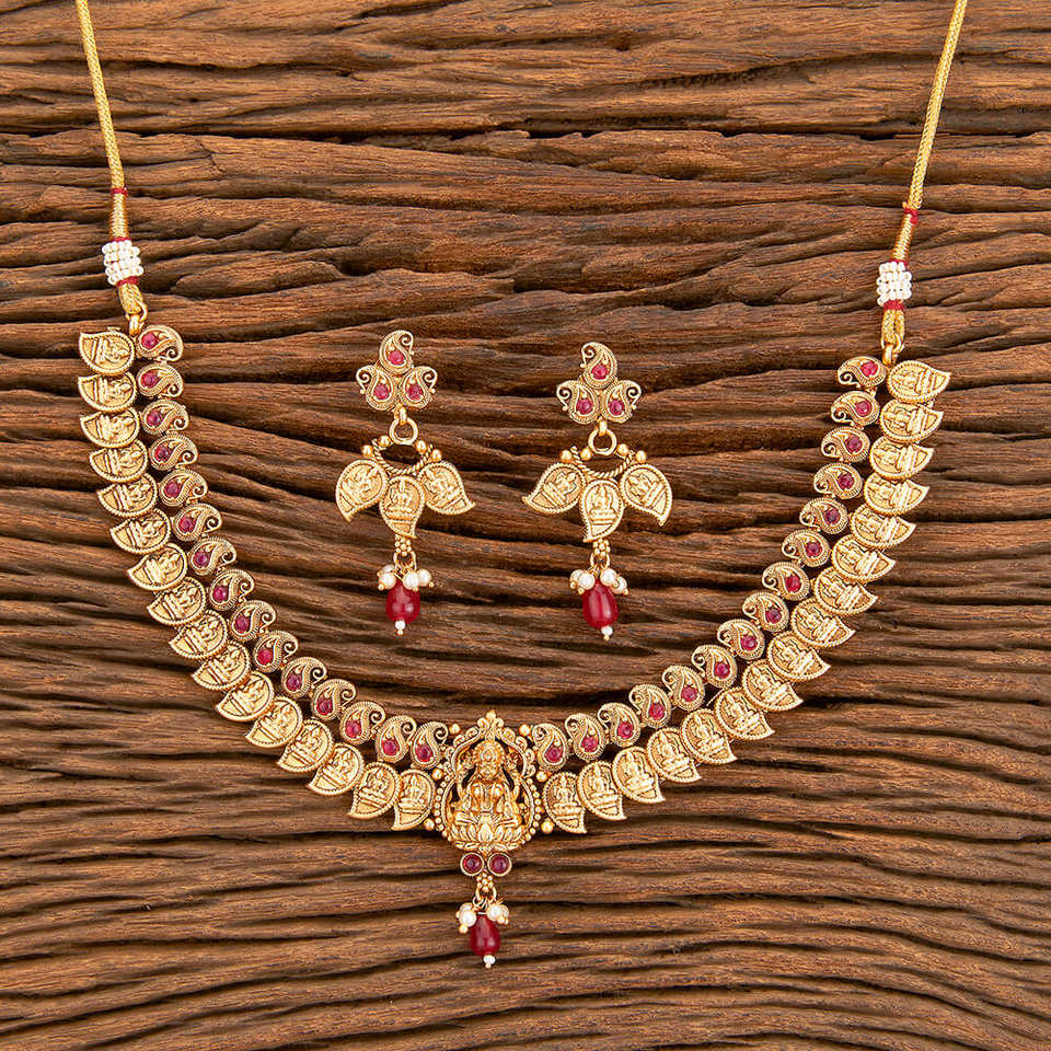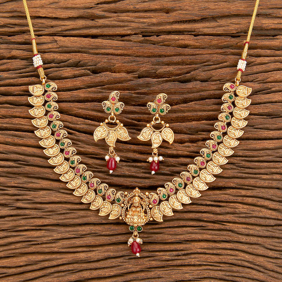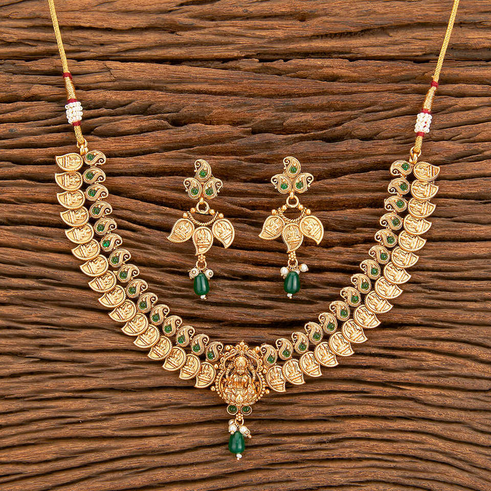 ชุดสร้อยคอวัดโบราณพร้อมเคลือบทองด้านในเครื่องประดับเทียมสำหรับงานแต่งงาน