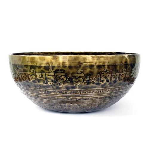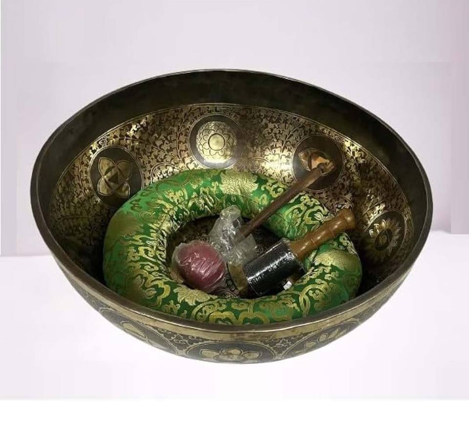 ชุดชามร้องเพลงทิเบตโบราณทำด้วยมือชามบำบัดเสียงหิมาลายันโลหะทองเหลืองใช้ในการทำสมาธิชามร้องเพลงขนาดใหญ่