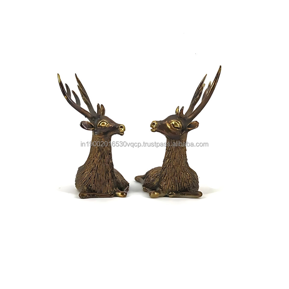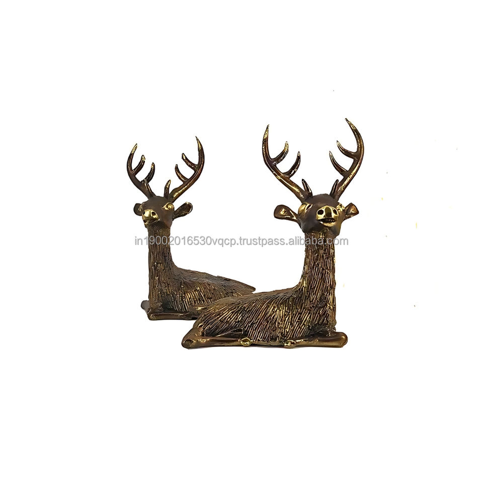 โบราณแบบดั้งเดิม4.5นิ้วคู่กวางทองเหลืองนั่งทำด้วยมือสร้างสรรค์ตารางโลหะตกแต่งโต๊ะศิลปะผิวทองแบบเรียบง่ายสำหรับบ้าน
