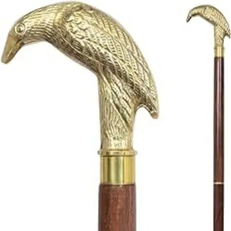 ไม้เท้าโบราณแบบวิกตอเรียด้ามทองเหลืองสำหรับเดินใช้ได้ทั้งชายและหญิงแบบพกพาและพับได้ไม้สำหรับคนแก่