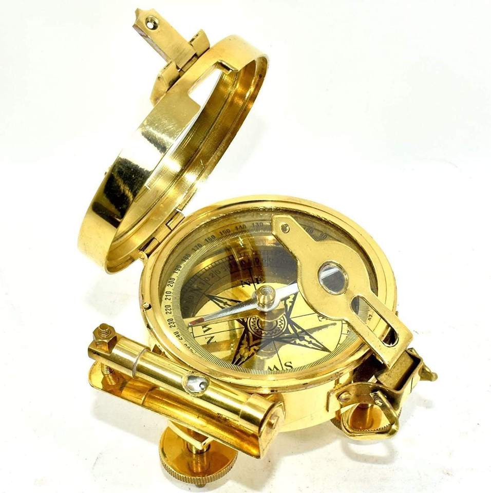 เข็มทิศบรันตันโบราณชุบทองเหลืองขัดเงา พร้อมนาฬิกาแดดแบบพกพาและขาตั้งสามขาสำหรับเดินเรือ โดย Calvin Handicrafts
