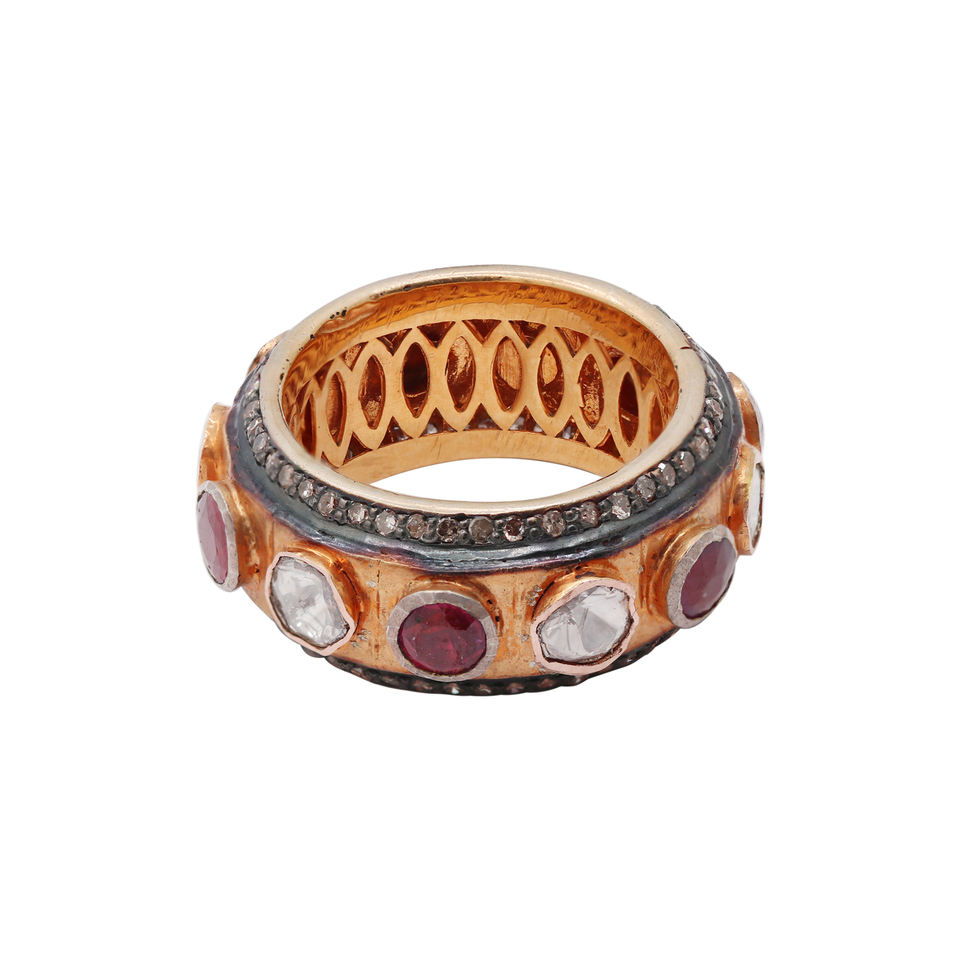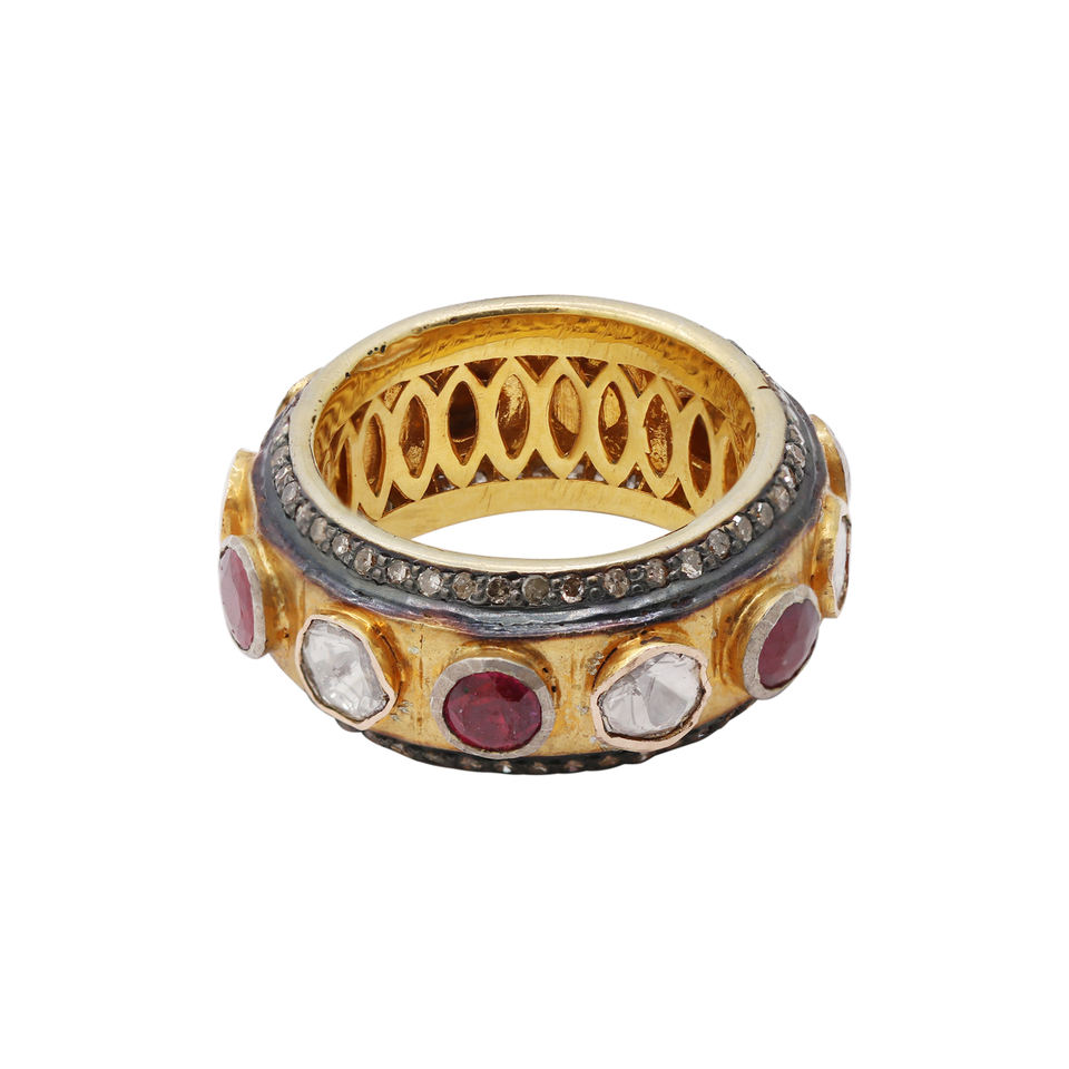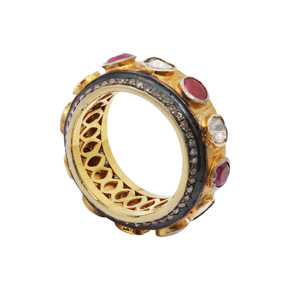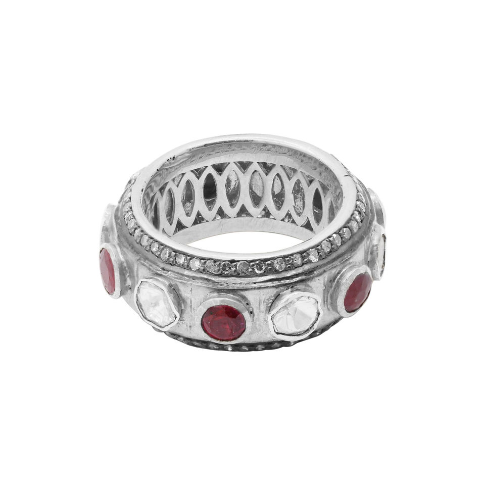 ทับทิมธรรมชาติโบราณโบราณพร้อมแถบอัญมณีเพชร polki 925แหวนเงินแท้ทำด้วยมือเครื่องประดับสำหรับขายส่ง