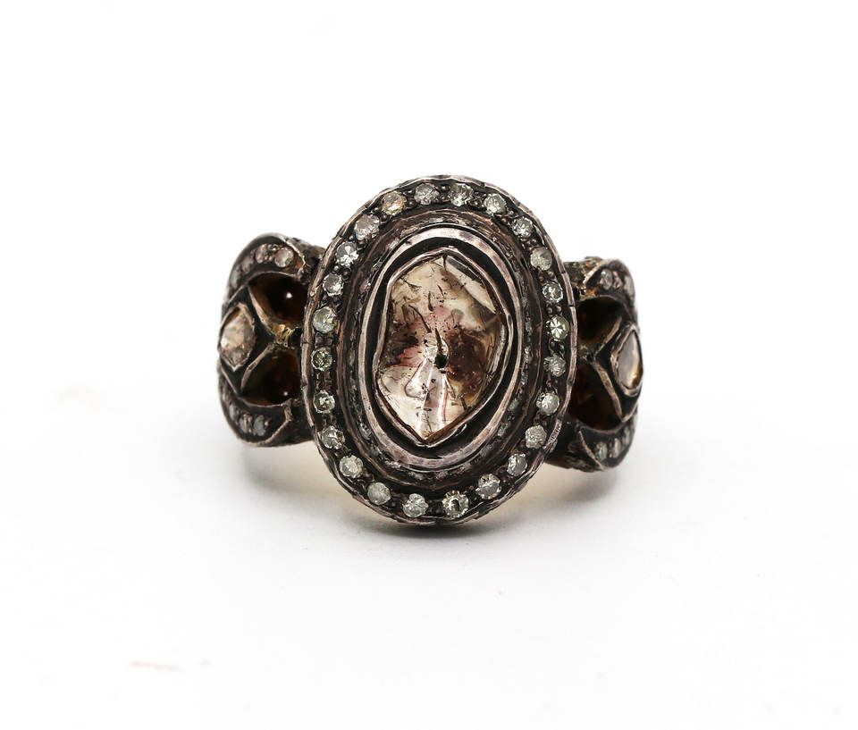 แหวนเงินพลอยเพชร polki