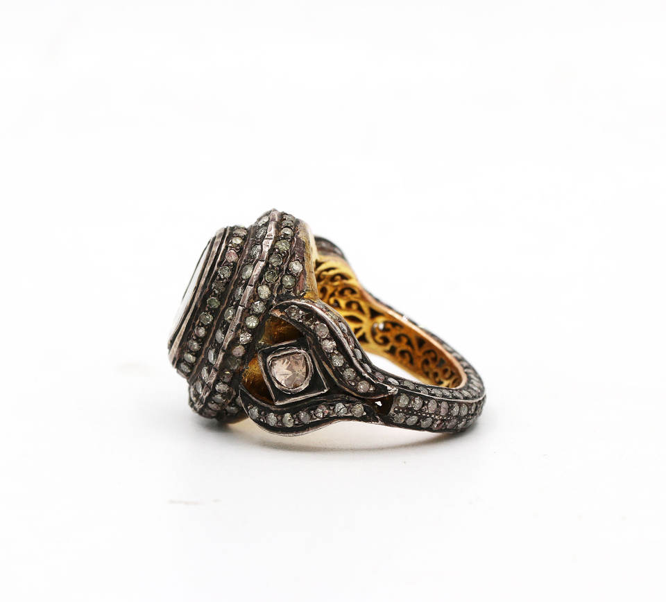 925อัญมณีโบราณ polki ทำด้วยมือเงินสเตอร์ลิงเครื่องประดับวิคตอเรียสำหรับขายส่ง
