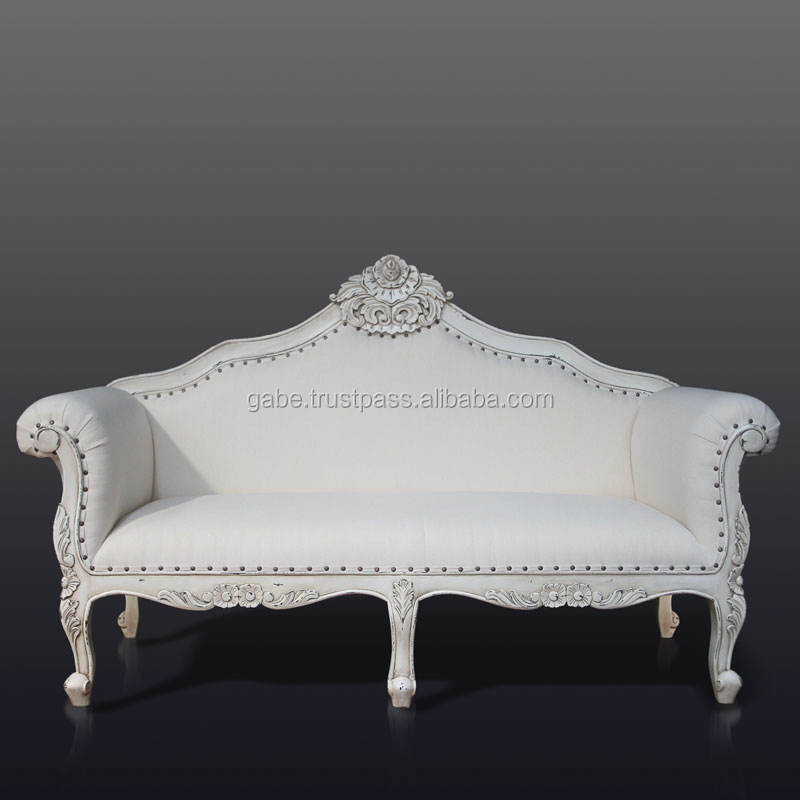 โซฟาไม้แกะสลัก2-Seater สีขาวโบราณสำหรับงานแต่งงานโซฟาห้องนั่งเล่นทำจากไม้เนื้อแข็ง