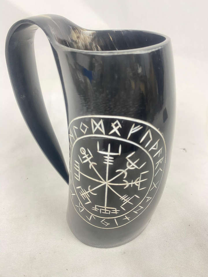 แก้วน้ำเขาควายสีขาวโบราณ ดีไซน์ขัดเงา ลายเขาควาย สไตล์วินเทจ ความจุขนาดใหญ่ พกพาสะดวก ขายส่ง