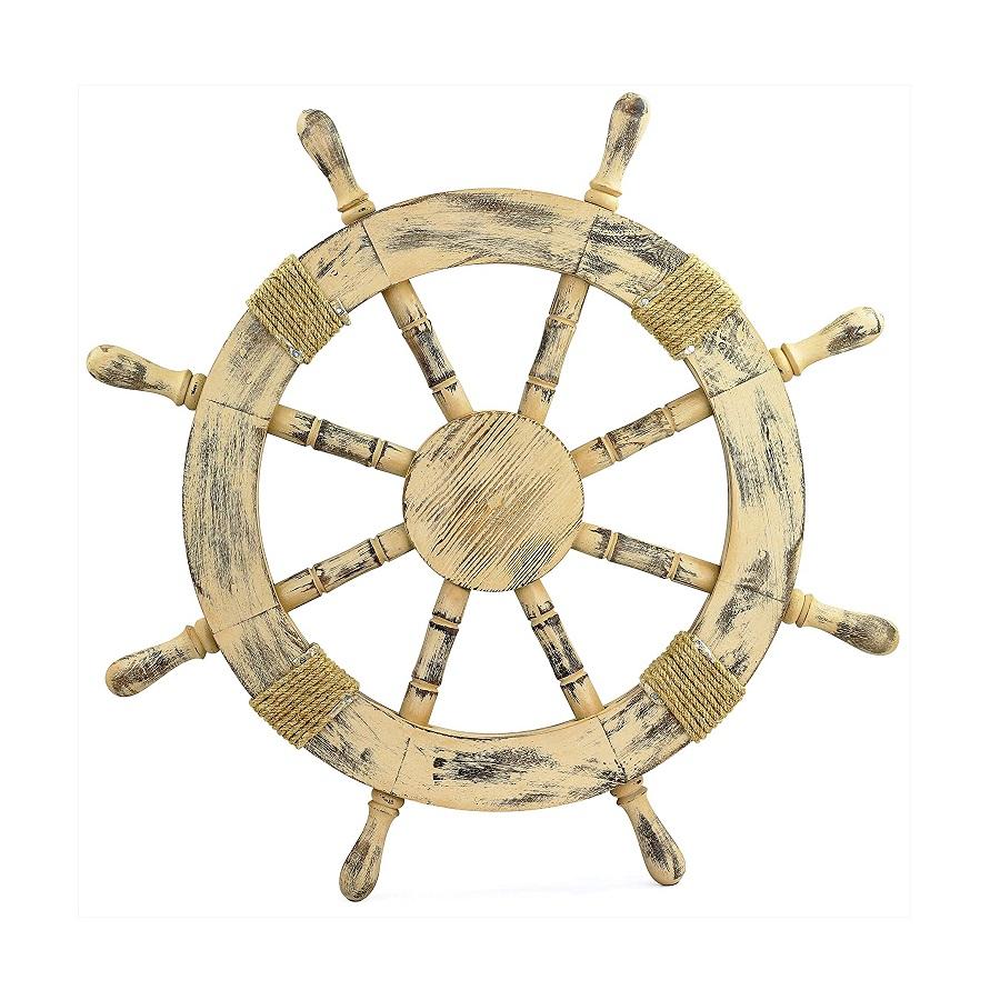 พวงมาลัยเรือไม้โบราณตกแต่งด้วยงานฝังทองเหลือง ไม้แขวนผนัง ล้อเรือ ล้อตกแต่งคริสต์มาส