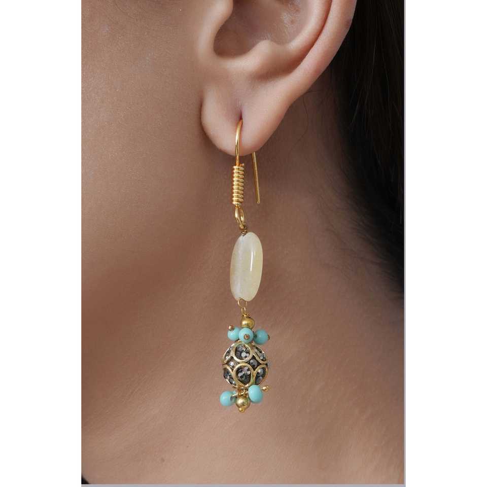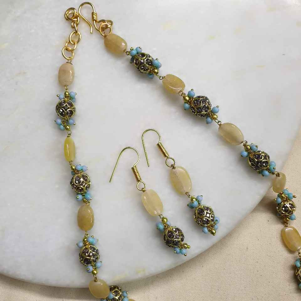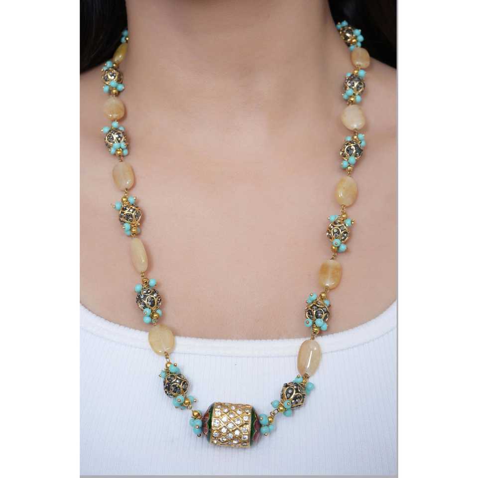 ชุดเครื่องประดับแฟชั่นสร้อยคอลูกปัดสีเหลืองเทอร์ควอยซ์โบราณ