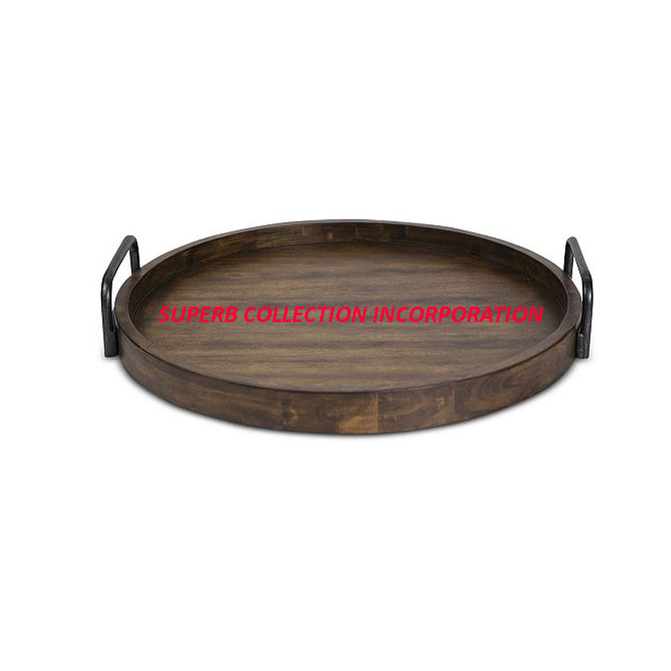 โบราณและวินเทจไม้ตกแต่งถาดที่มีด้ามจับโลหะในการขายร้อนทำในประเทศอินเดีย