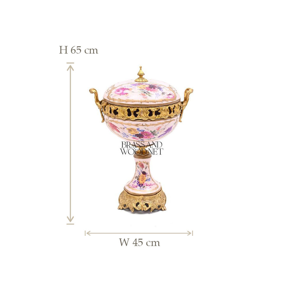 ชามเคลือบทองเหลืองโบราณและพอร์ซเลนที่มีภาพวาดดอกไม้แสงรายละเอียดการออกแบบที่ได้แรงบันดาลใจจากวินเทจและหรูหรา