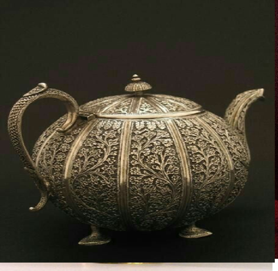 กาน้ำชาทองเหลืองโบราณที่มีลายริ้วแนวตั้งลึกและฝาปิดตกแต่ง สไตล์วินเทจพร้อมจำหน่ายในราคาขายส่ง