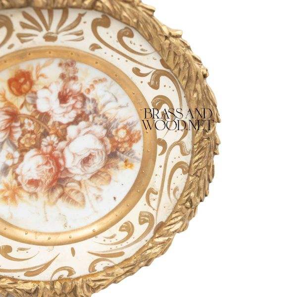 ศิลปะผนังทองเหลืองโบราณที่มีกรอบใบหรูหราและเครื่องเคลือบดินเผาดอกไม้ในการออกแบบวินเทจคลาสสิกหรูหรา