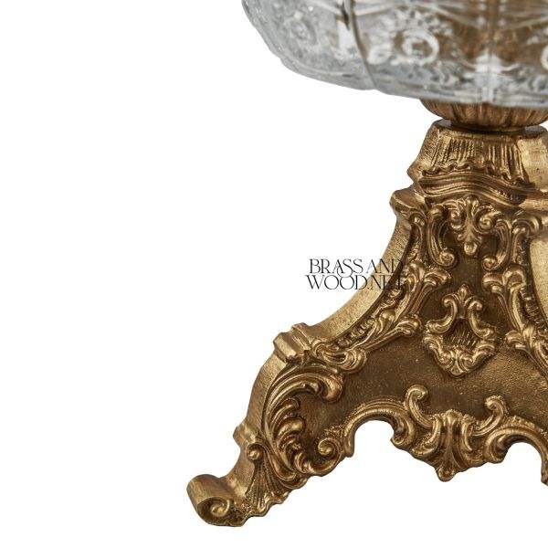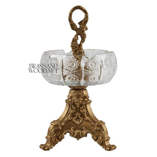 ที่เขี่ยบุหรี่ทองแดงโบราณพร้อมชามคริสตัลทำมือทองเหลืองตกแต่งด้วยมือขาตั้งดีไซน์วินเทจและอุปกรณ์ตกแต่งบ้าน