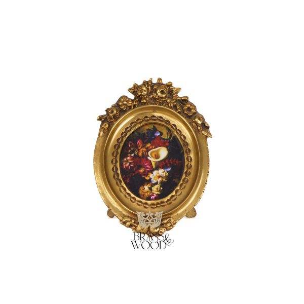 Antique copper decorative oval frame handmade brass artwork with floral painting vintage style elegant home and office accessory