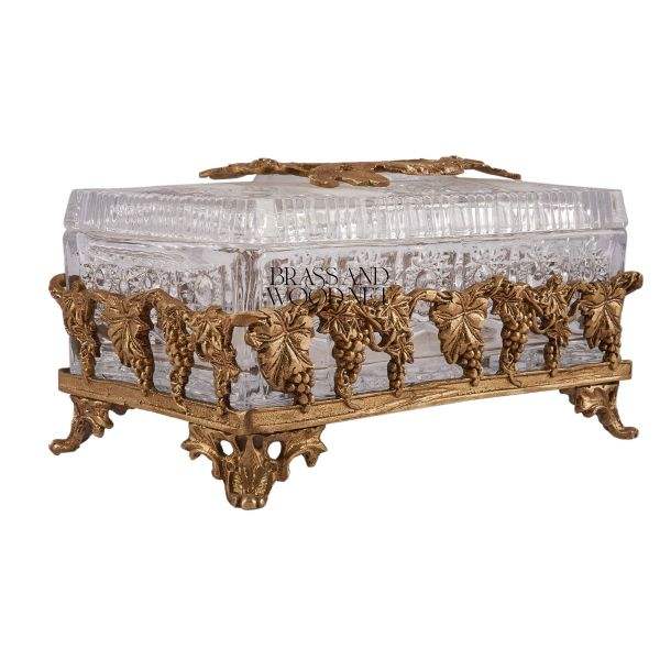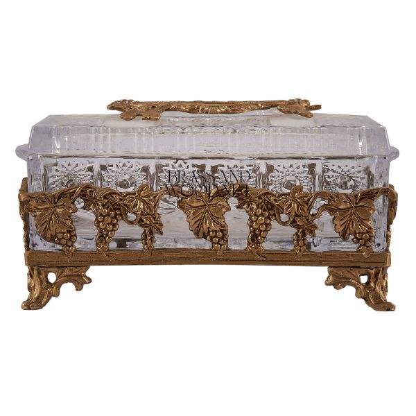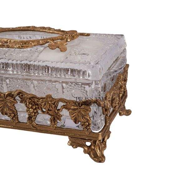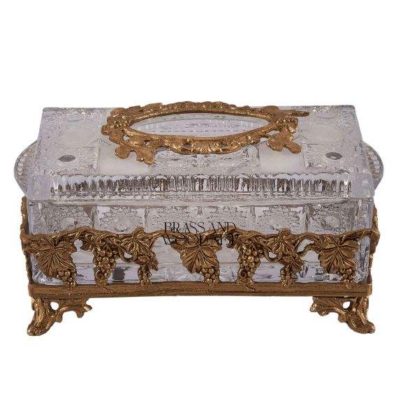 กล่องทิชชู่ทองแดงโบราณทำมือตกแต่งด้วยคริสตัลดีไซน์วินเทจและทองเหลืองสุดหรู